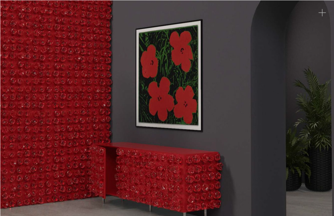MDF sideboard and wall panel system with transparent polystyrene flowers.