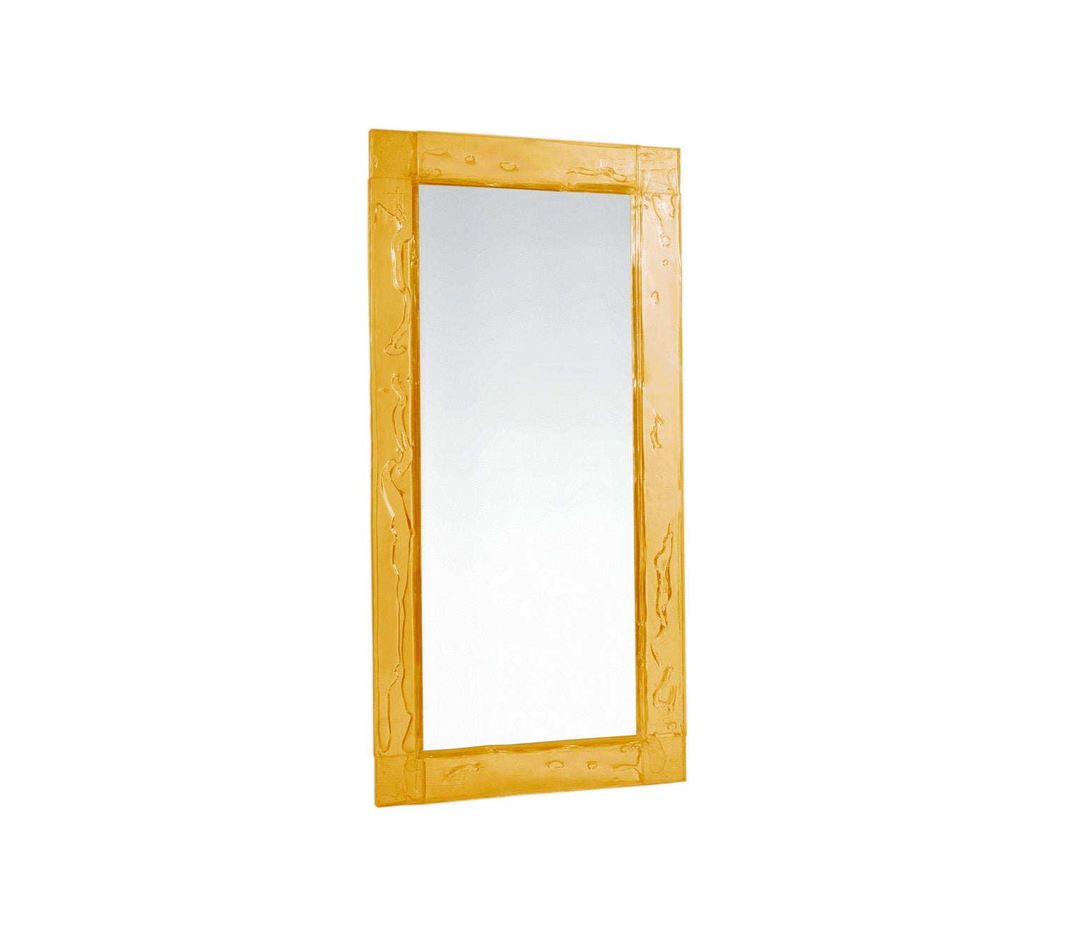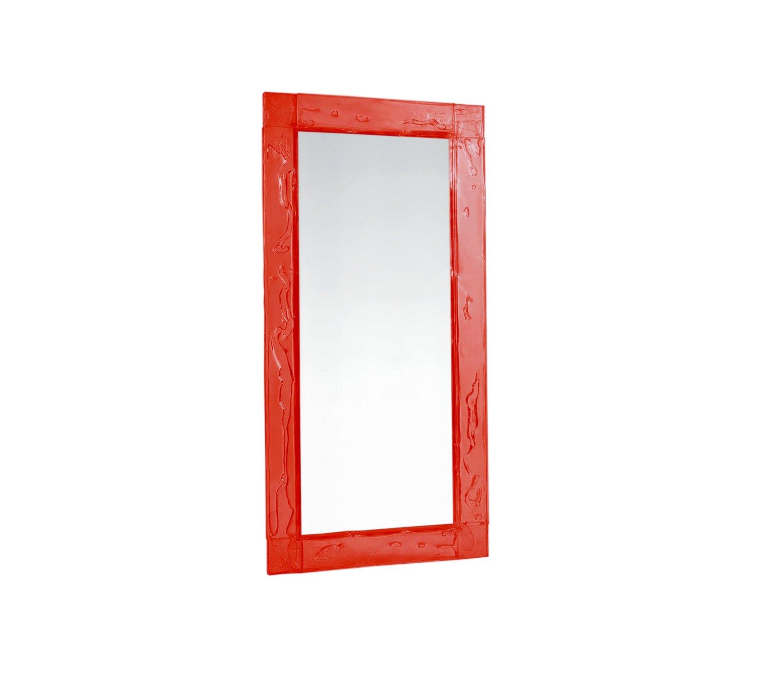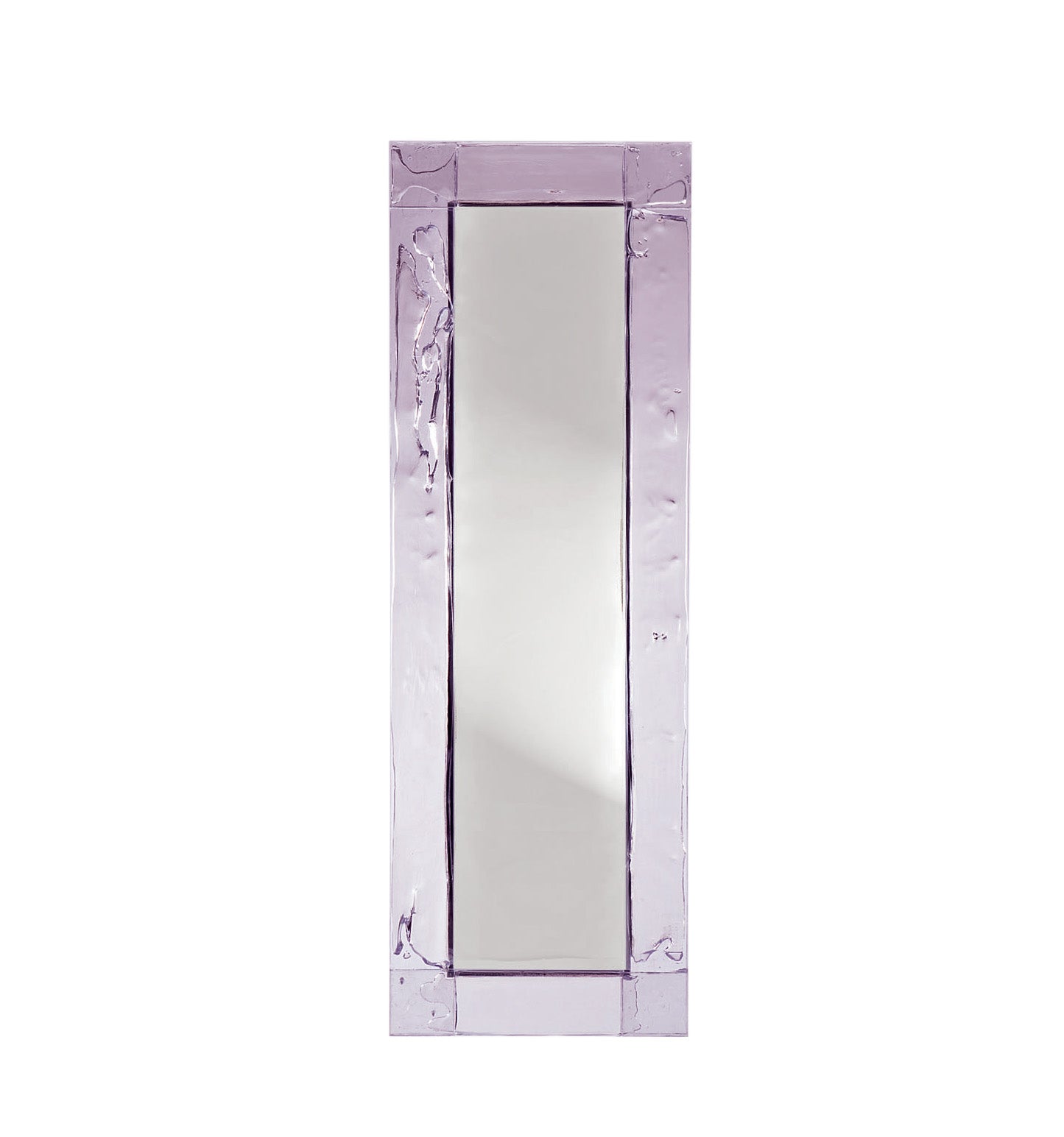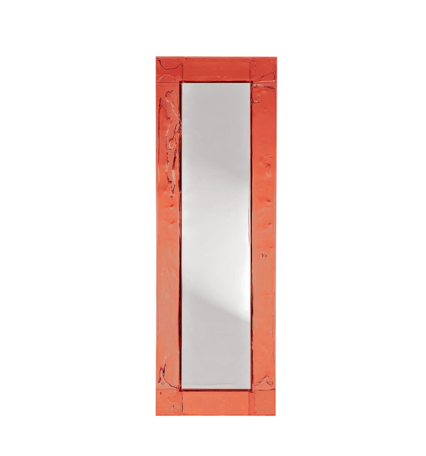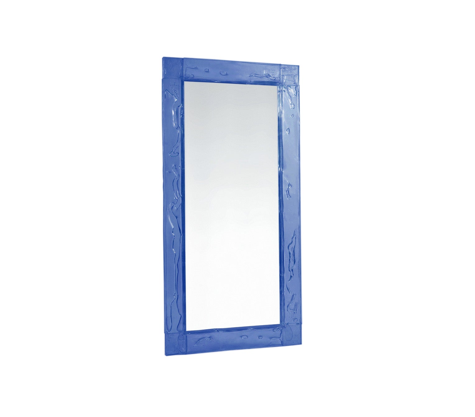 Doppia Corsia, essential mirror with a transparent plystyrene frame in different colours. Sheets in a two way traffic, straight, linear, precise.