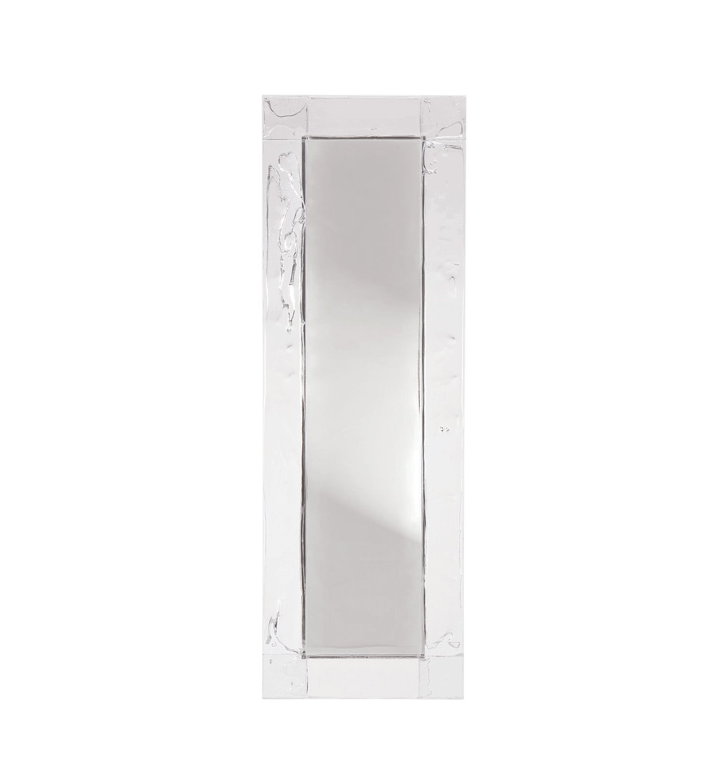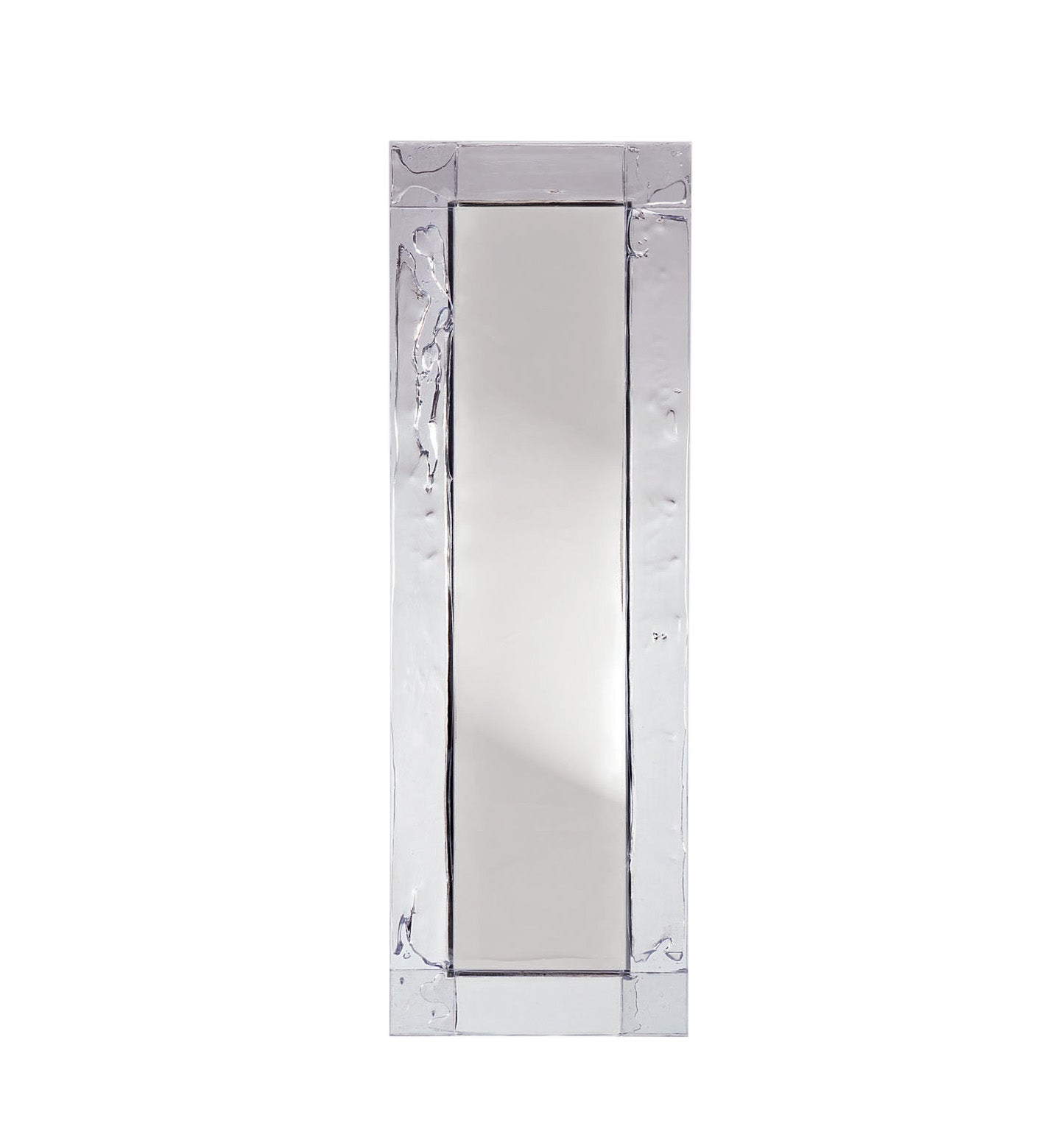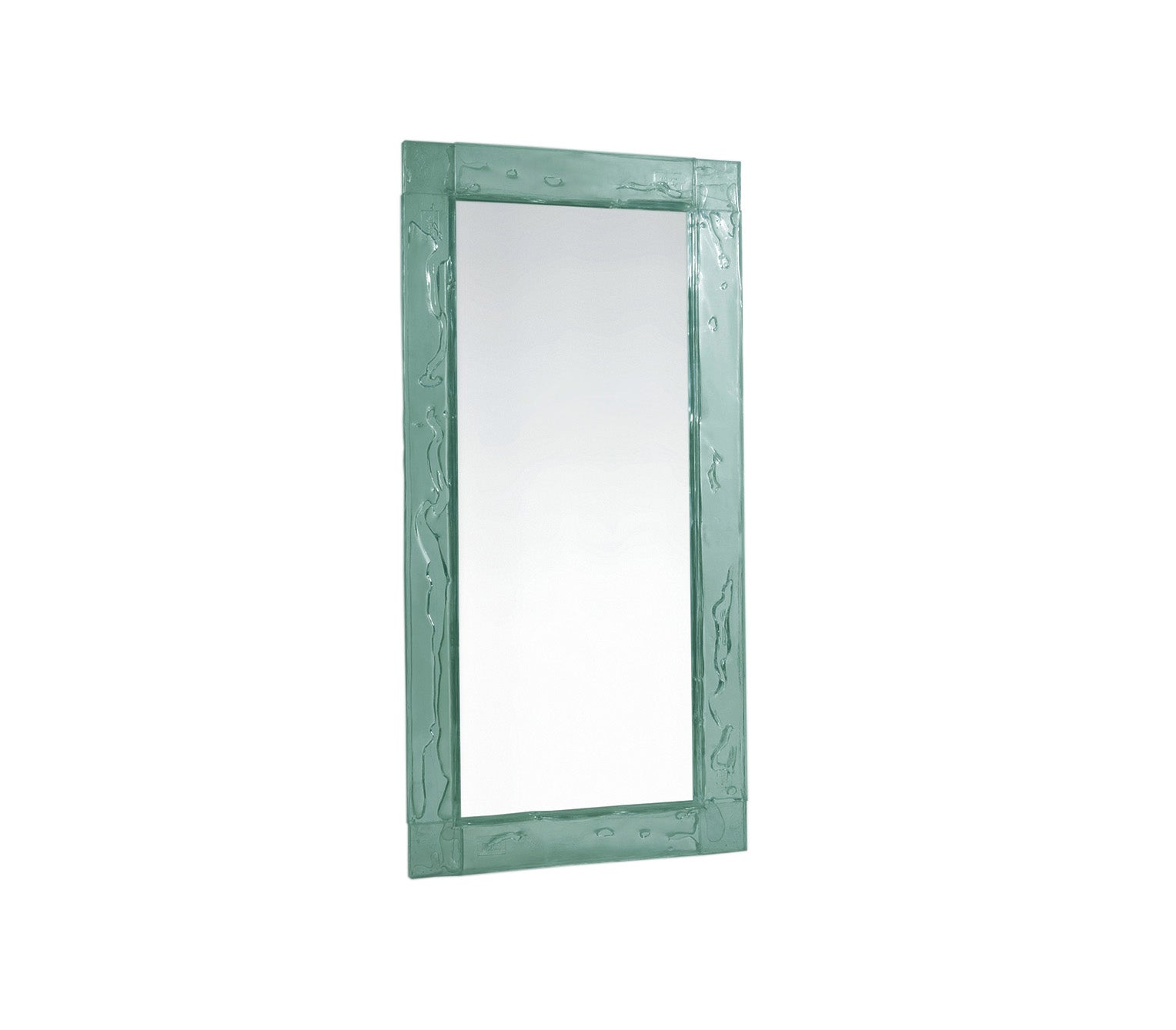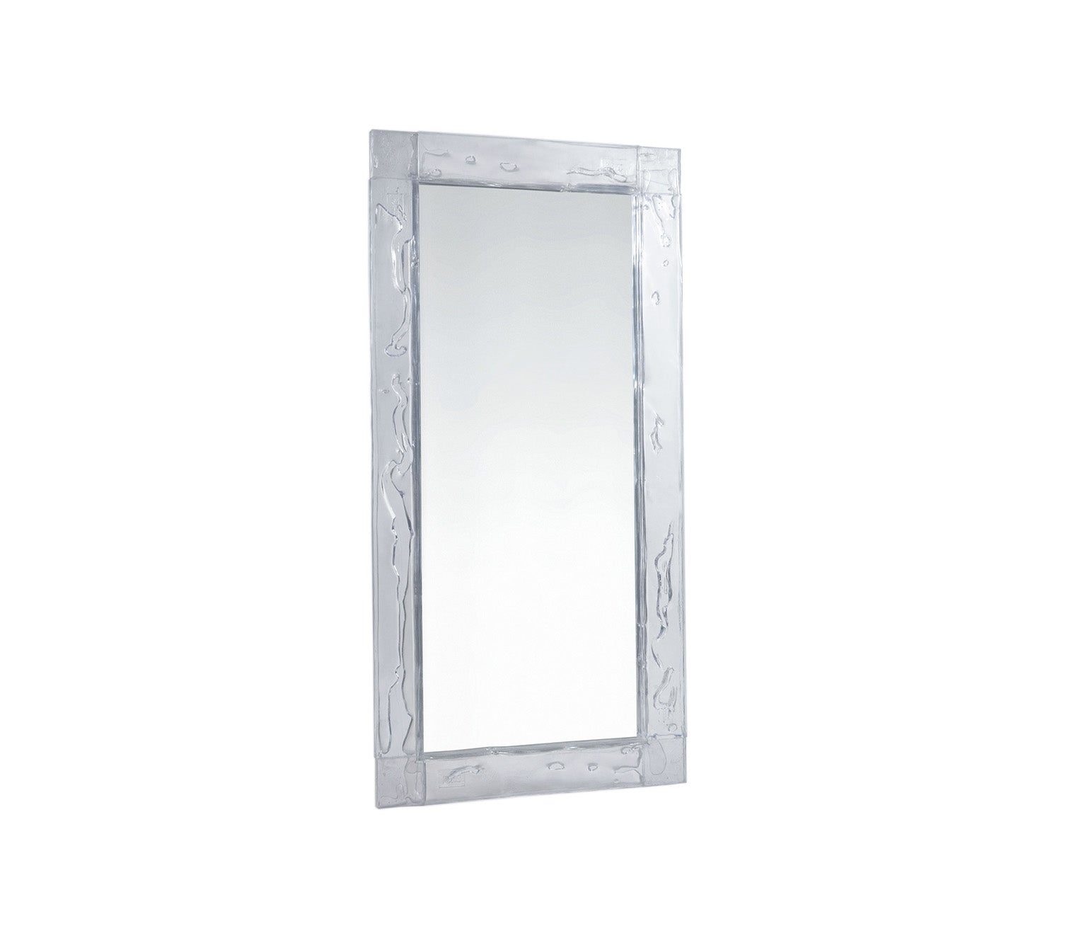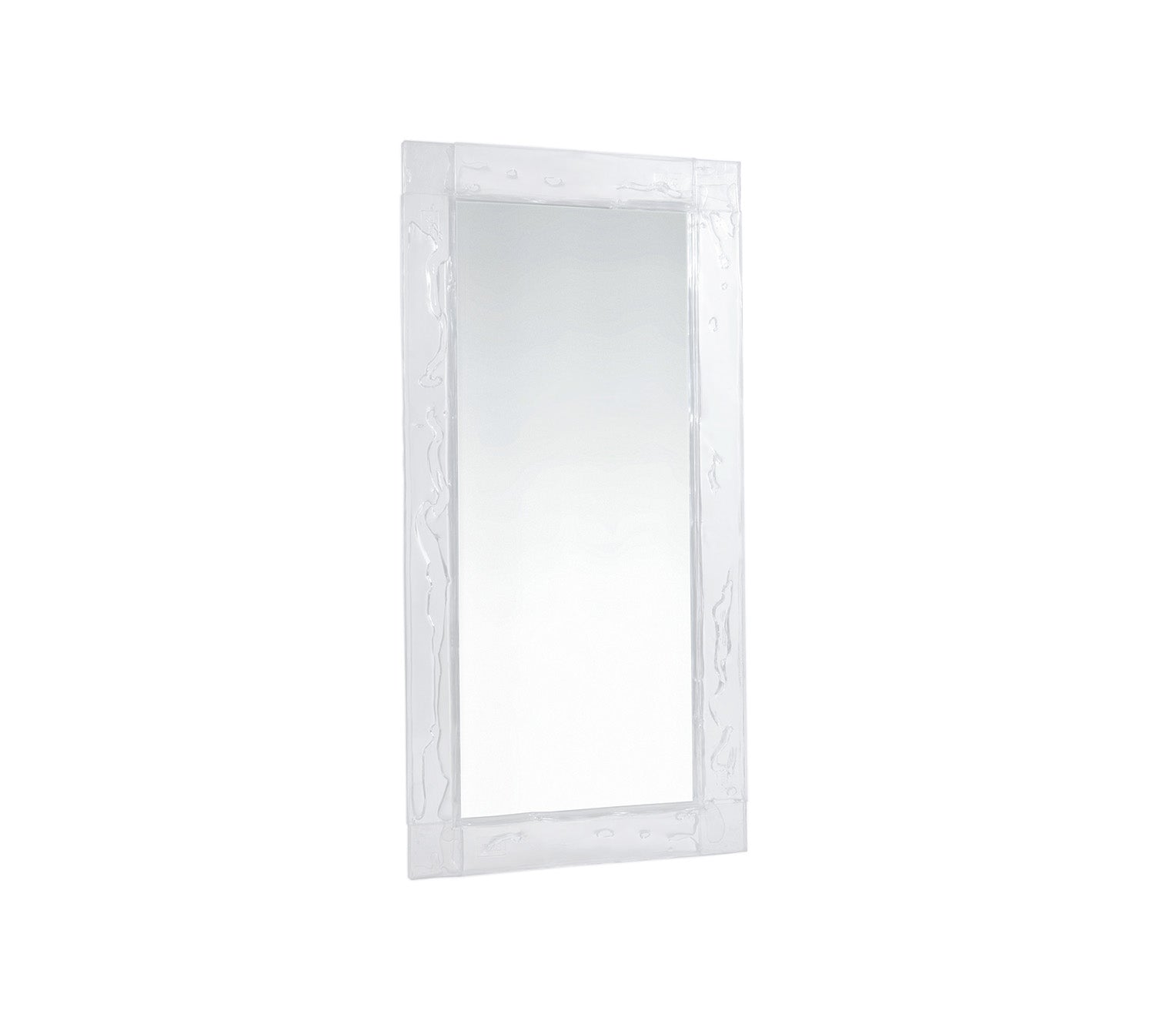 Doppia Corsia, essential mirror with a transparent plystyrene frame in different colours. Sheets in a two way traffic, straight, linear, precise.